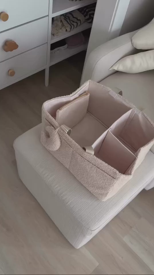 Bouclé Diaper Caddy Organizer with Matching Pouch & Moon Pendant